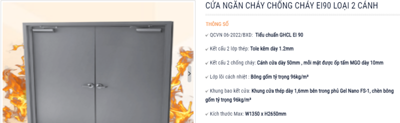 CỬA CHỐNG CHÁY EI90 2 CÁNH – TRUNG TÂM ỨNG DỤNG KHOA HỌC CÔNG NGHỆ VỀ PHÒNG CHÁY CHỮA CHÁY